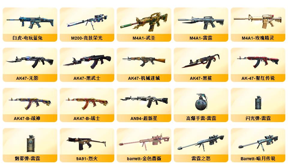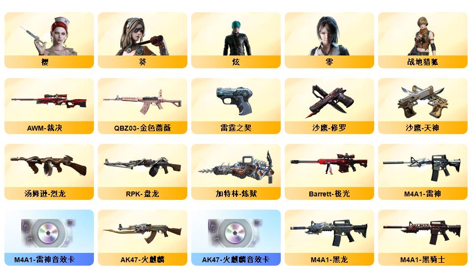 200V:新枪娘暗刃斯泰尔❤️白鲨幻神❤️白鲨QBZ03❤️白鲨麒麟刺❤️❤️王者幻神❤️传说光耀❤️夜魔7套❤️网剧冠军套6盘6烈爆破生化挑战号