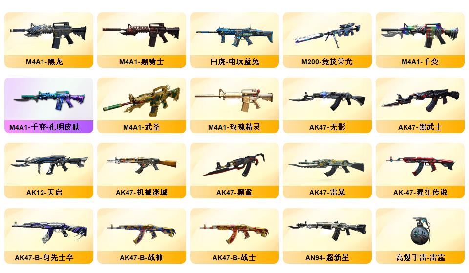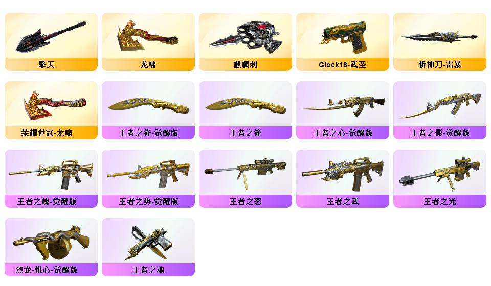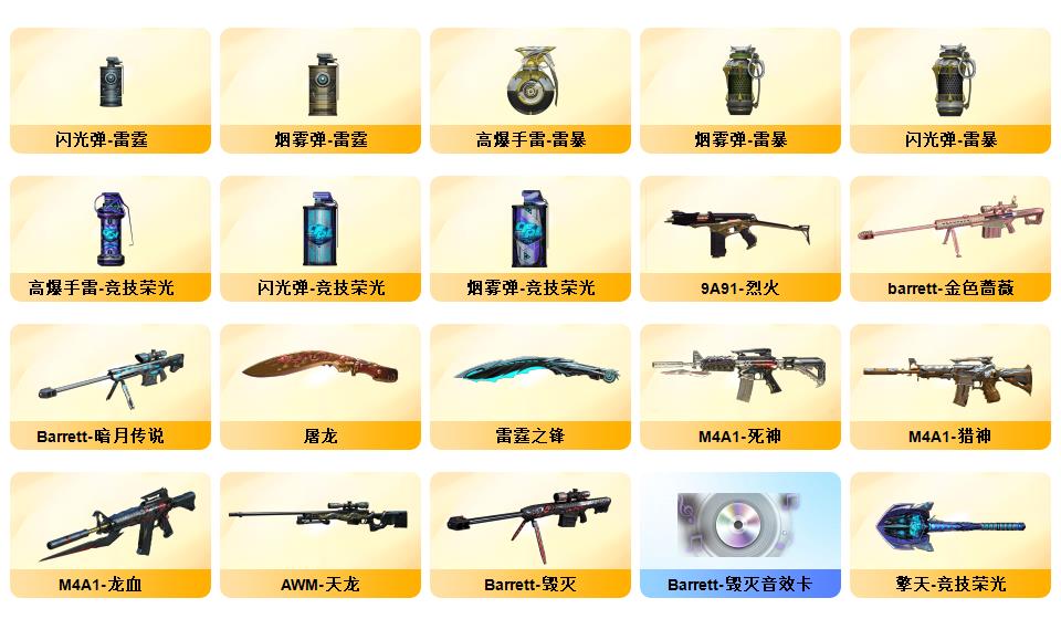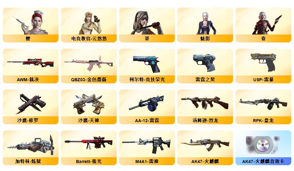 100V幻神荣光套/电竞云悠悠/惊若翩鸿/蛇隐宗/QBZ蔷薇套/毁灭音效+星空耀金青帝/极光音效/雷神星空/AG火麒麟/雷暴USP/六修罗/王者冰魄/开挂必起诉