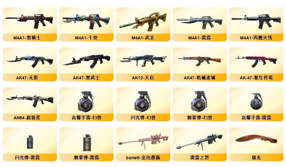 140V雷暴套/雷霆套/六烈龙蝴蝶斯太尔/炼狱小钢/白虎之魄/毁灭音效+荣耀之怒+AG冠军/雷神音效+荣耀星空/AG火麒麟音效/黑骑音效/竞魂音效/生化无需换弹