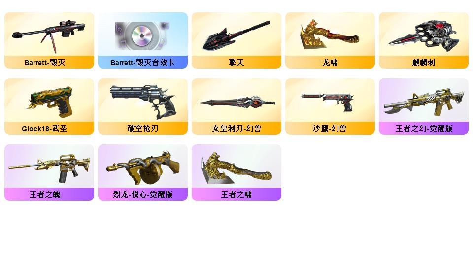 西部100+V传说光耀,幻神,王者幻神觉醒,G36C幻影,白虎,朱雀,QBZ,夜魔套,双COP,六烈六盘,隼(追踪标志)机械猎手皮,6音效卡,7套雷,10个四防