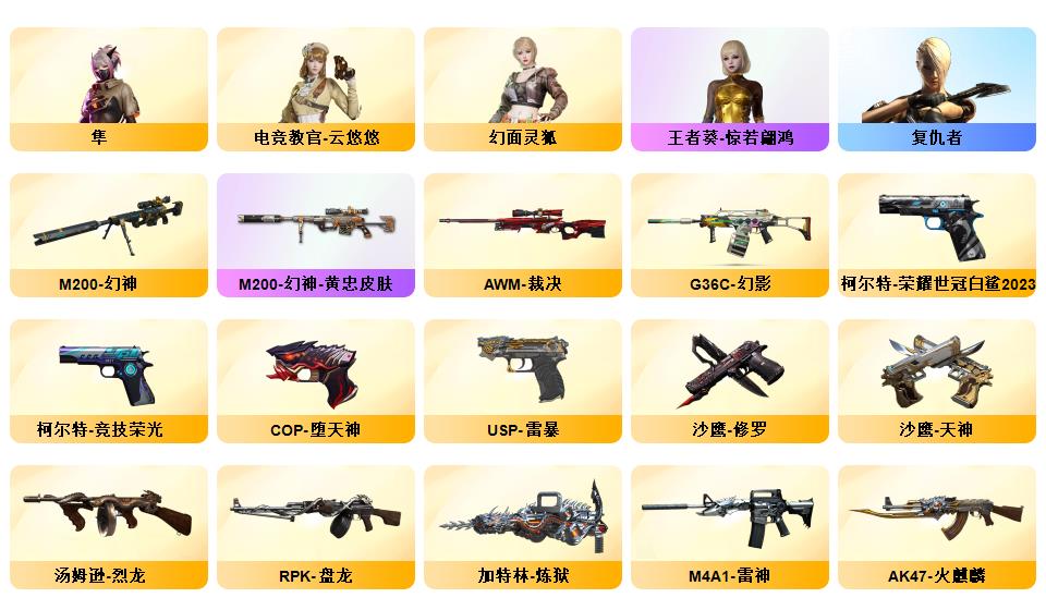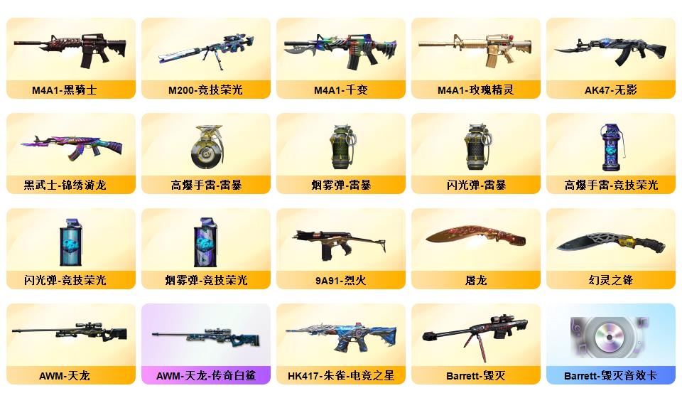北部双幻神音效炮/荣耀4件套/传奇EVEN/竞技荣光STAR全套8副/白鲨S14冠军/赛事皮若干/夜魔AG战队耀金星空电竞幻灵雷暴套/职业选手三防小人枪