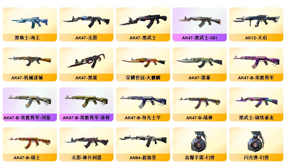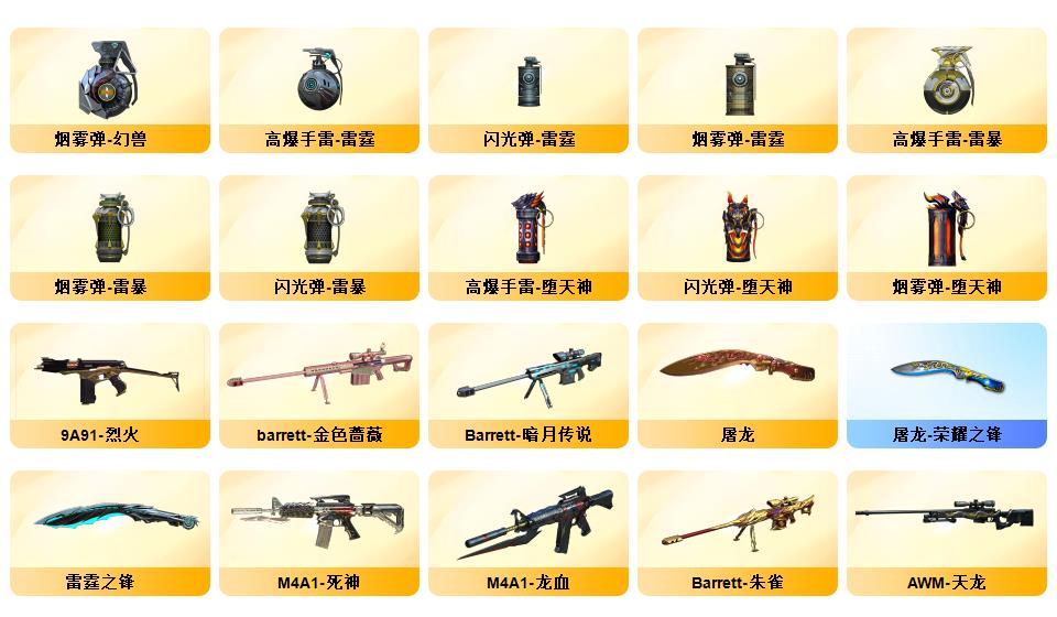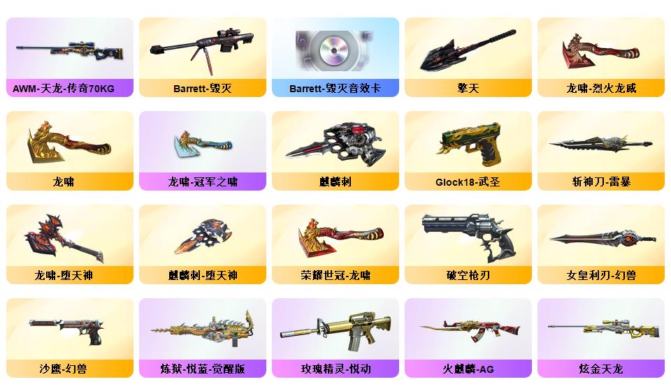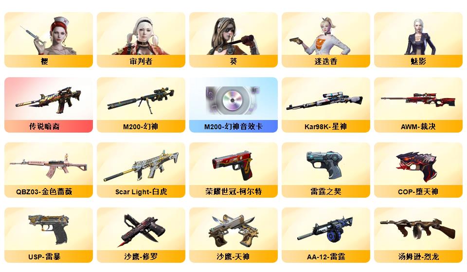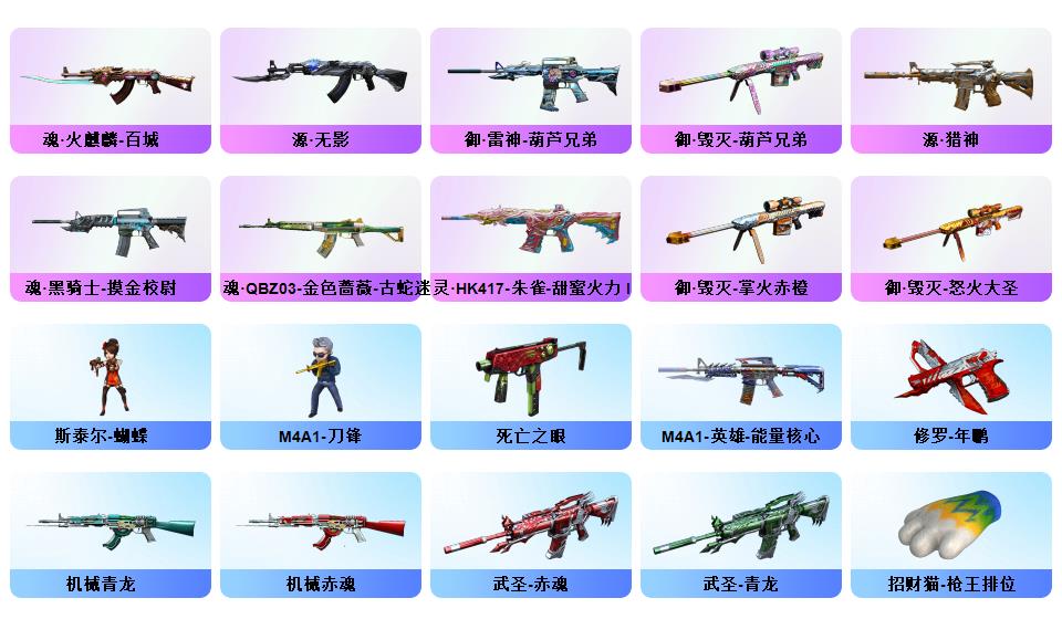 顶级生化传说圣谕破晓四防星骇隼满级八面凌龙炼狱泡泡象斯泰尔萌兔双清道夫蛇影双娇王者玄武六烈盘炼狱音效卡裁决音效卡法玛斯天戎玄豹套金蚀冥王MAC千针刺鲨机械猎手皮