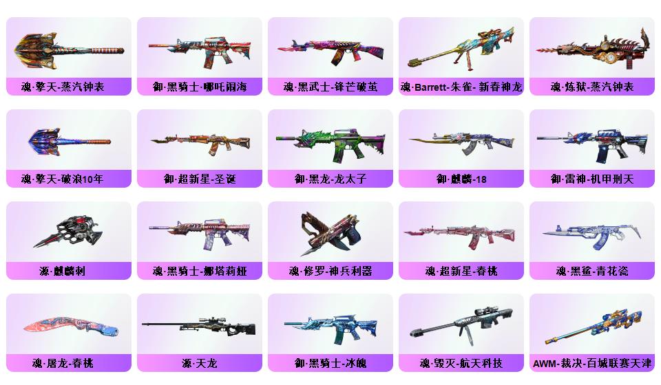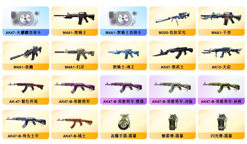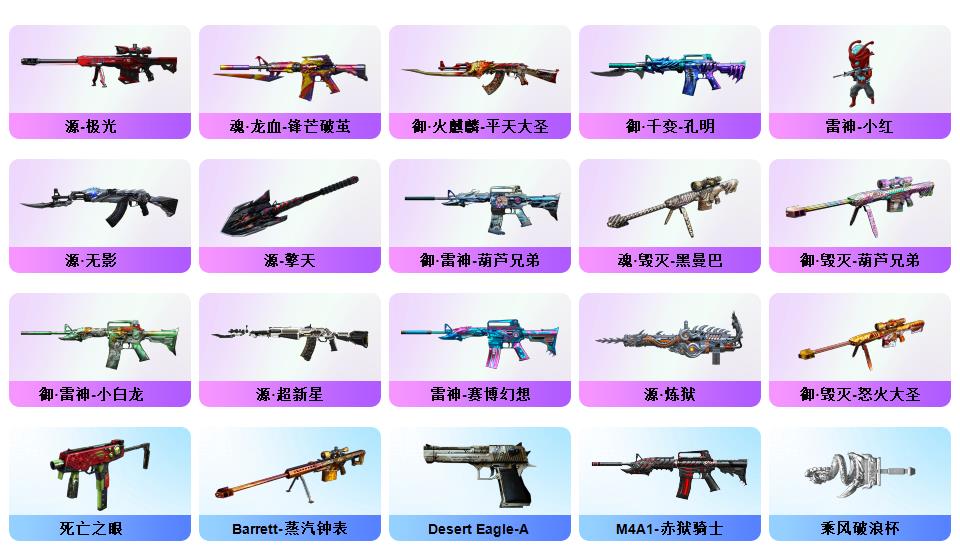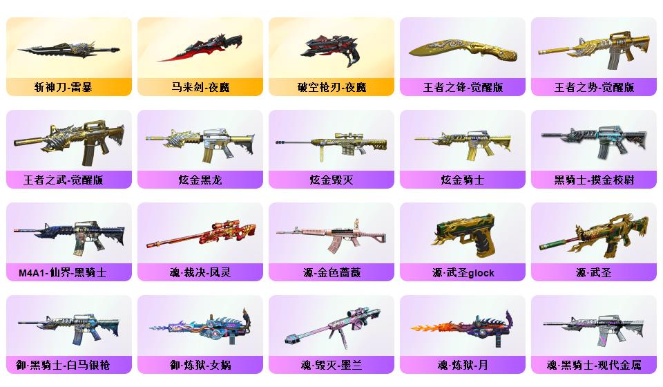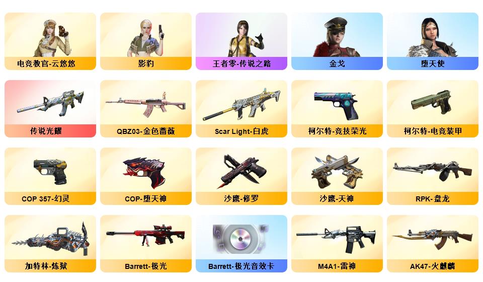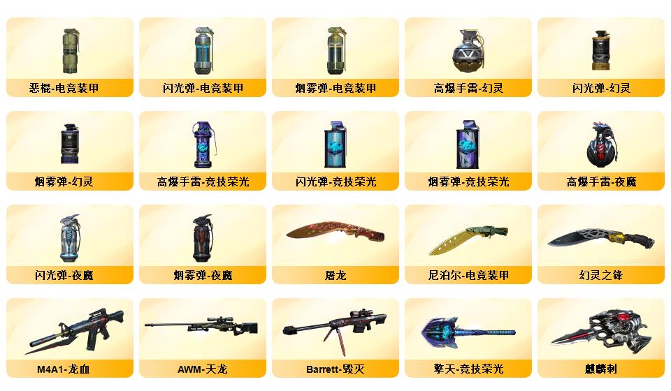 北部双幻神音效炮/荣耀4件套/传奇EVEN/竞技荣光STAR全套8副/白鲨S14冠军/赛事皮若干/夜魔AG战队耀金星空电竞幻灵雷暴套/职业选手三防小人枪
