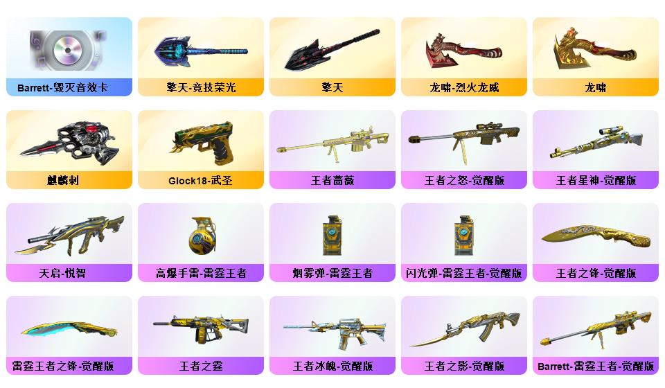 140V雷暴套/雷霆套/六烈龙蝴蝶斯太尔/炼狱小钢/白虎之魄/毁灭音效+荣耀之怒+AG冠军/雷神音效+荣耀星空/AG火麒麟音效/黑骑音效/竞魂音效/生化无需换弹