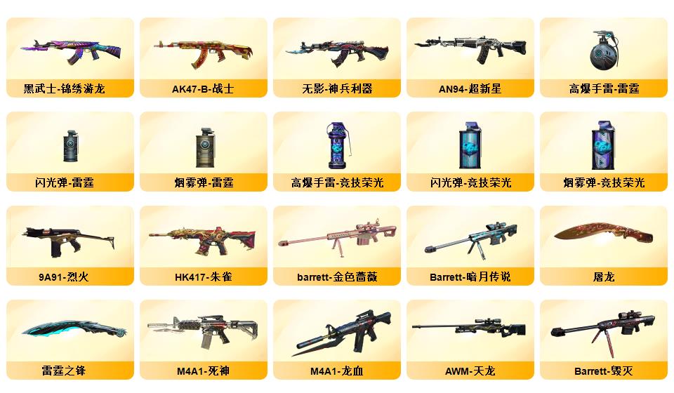 200V:新枪娘暗刃斯泰尔❤️白鲨幻神❤️白鲨QBZ03❤️白鲨麒麟刺❤️❤️王者幻神❤️传说光耀❤️夜魔7套❤️网剧冠军套6盘6烈爆破生化挑战号