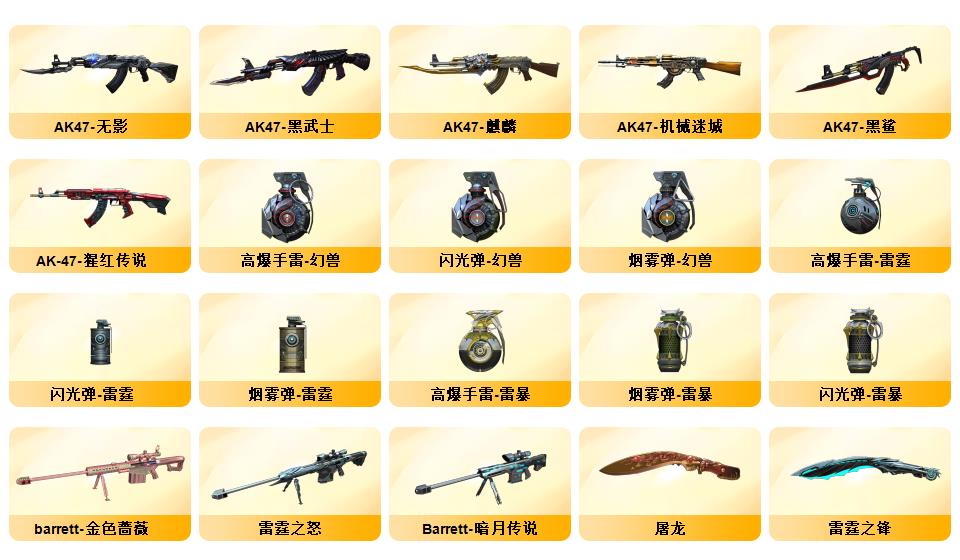 200V:新枪娘暗刃斯泰尔❤️白鲨幻神❤️白鲨QBZ03❤️白鲨麒麟刺❤️❤️王者幻神❤️传说光耀❤️夜魔7套❤️网剧冠军套6盘6烈爆破生化挑战号