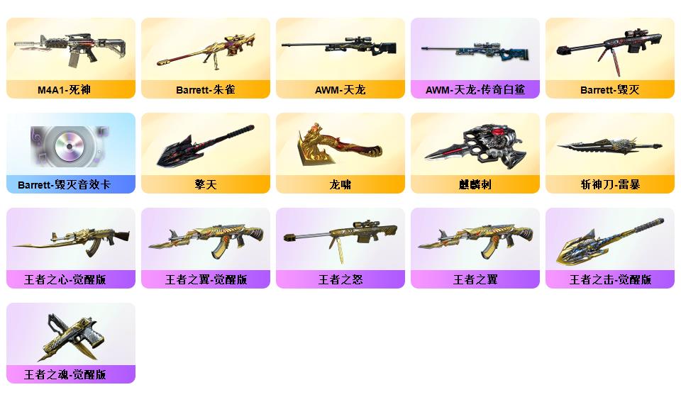 200V幻神8皮+幻神音效卡王者星神王者风神玄武G36-幻影白虎3皮+音效卡QBZ3皮+音效卡雷神(虎牙)12皮肤毁灭8皮全套冠军3冠军之刃7音卡