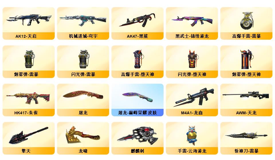100V☀7副7刀☀8烈龙✚死亡之眼☀弹夹道具齐全☀死亡之眼子弹上千发☀各种英雄武器都有!超多皮肤