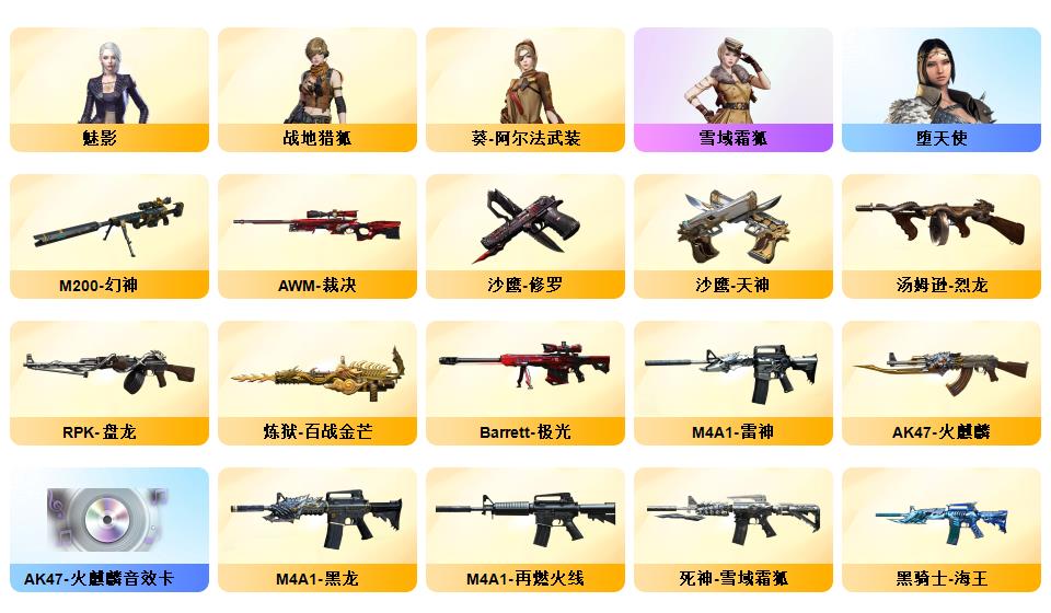 北部双幻神音效炮/荣耀4件套/传奇EVEN/竞技荣光STAR全套8副/白鲨S14冠军/赛事皮若干/夜魔AG战队耀金星空电竞幻灵雷暴套/职业选手三防小人枪